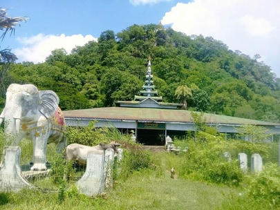 ဆင်ဖြူတောင်စေတီသည် ပျဉ်းမနားမြို့ အရှေ့မြောက်ဘက် ၇ မိုင်အကွာ ပေါင်းလောင်းမြစ် အရှေ့ဘက် ကူးတို့ဆိပ်ကျေးရွာအုပ်စု ဝဲကြီးကျေးရွာတွင် တည်ရှိသည်။ တောင်ပေါ်သို့တက်ရောက်ရန် အရှေ့မြောက်ဘက် ဆောင်းတန်းနှင့် အနောက်ဘက်ဆောင်းတန်း နှစ်သွယ်ရှိရာ အနောက်ဘက်ဆောင်းတန်းမှာ တောင်ခြေရှိ ပေါင်းလောင်းရေလွှဲဆည်၏ ရေလွှမ်းမိုးမှုကြောင့် အသုံးပြု၍မရဘဲ အရှေ့မြောက်ဘက်ဆောင်းတန်းမှသာ တက်ရောက်နိုင်ပါသည်။ တောင်ခြေတွင် ၁၉၃၁ ခုနှစ်တွင် ရသေ့ကြီးဦးခန္တီဦးဆောင်၍ ပျဉ်းမနားမြို့မှ သူဌေးဦးလန်းနှင့်ဒေါ်မမလေးတို့ ဆောက်လုပ်လှူဒါန်းထားသည့် ကိုလိုနီခေတ်သွပ်ပန်းချီလက်ရာများ မြင်တွေ့နိုင်သော ကိုးခန်းကြီးဇရပ်တစ်ဆောင်တည်ရှိပါသည်။ တောင်ပေါ်သို့တက်ရာ ဆောင်းတန်းတလျှောက်တွင် ဘုရားစေတီများ နှင့် နတ်နန်းတစ်ခုကို မြင်တွေ့နိုင်ပါသည်။ တောင်ထိပ်တွင် မဟာမုနိရုပ်ပွားတော်တစ်ဆူနှင့် ဉာဏ်တော် ၁၅ ပေ အမြင့်ရှိသော ဆင်ဖြူတောင်စေတီတစ်ဆူ တည်ရှိပါသည်။