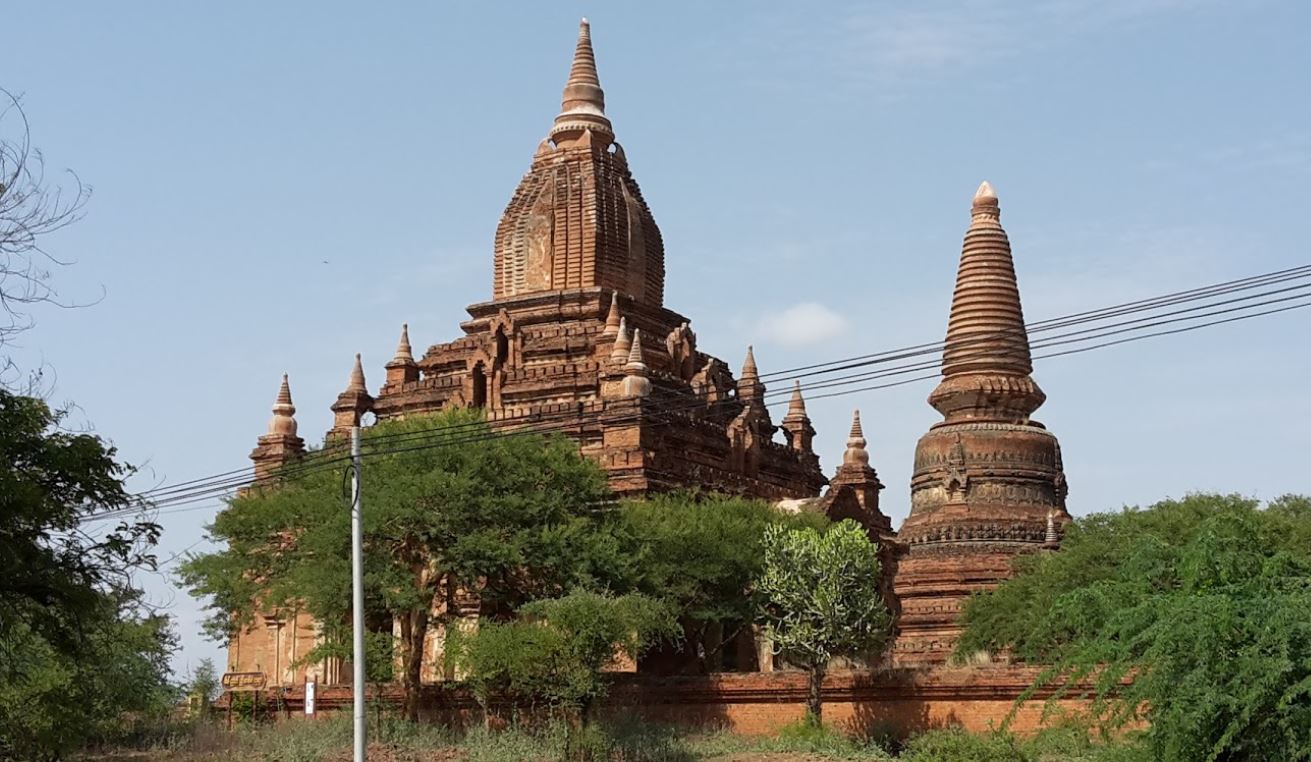 စိမ်းညက်ညီအစ်မဘုရားသည် မန္တလေးတိုင်းဒေသကြီး၊ ညောင်ဦးမြို့နယ်၊ ပုဂံဒေသ၊ ပုဂံမြို့သစ်သွားလမ်းမကြီးဘေး၊ စိုးမင်းကြီးအုတ်ကျောင်းအနီး၌ တည်ရှိပါသည်။ စိမ်းညက်ညီအစ်မဘုရားတွင် စိမ်းညက်အစ်မဘုရားသည် ကွမ်းတောင်ပေါက် လိုဏ်တစ်ဆင့်ဂူဘုရားဖြစ်ပြီး ထိုဘုရားအနီးရှိ ညီမဘုရားသည် ပုဂံခေတ် သီဟိုဠ်(သီရိလင်္ကာ)ပုံစံစေတီဖြစ်ပါသည်။ ဘုရားနှစ်ဆူစလုံး အုတ်တံတိုင်းတစ်ခုအတွင်း၌ တည်ရှိပါသည်။ စိမ်းညက်အစ်မဂူဘုရားလေးမျက်နှာ၌ အဝင်မုခ်လေးခုရှိသည်။ အရှေ့မျက်နှာမုခ်သည် အဝင်အာရုံခံမုခ်ဖြစ်သည်။ ပစ္စယာလေးဆင့်ပါပြီး အောက်ဘက်ပစ္စယာ သုံးဆင့်၌ နတ်လှေကားများ တပ်ဆင်ထားသည်။ ပစ္စယာများ အထက်တွင် ကွမ်းတောင် ရှိသည်။ မုခ်လေးခုစလုံးတွင် စုလစ်သုံးခုစီဆင့်၍ တန်ဆာဆင်ထား၏။ စုလစ်များတွင် ရုပ်တု၊ ရုပ်ကြွများဖြင့် တန်ဆာဆင်ထားသော်လည်း ယခုအခါ အတော်အတန် ပျက်စီးနေပြီဖြစ်သည်။ သို့သော် မူလအဆင်တန်ဆာ လက်ရာအနည်းငယ်ကား ကြွင်းကျန်နေသေး၏။ အတွင်းတွင် စင်္ကြံပတ်လမ်းရှိပြီး နံရံများ၌ ငါးရာ့ငါးဆယ်ဇာတ်နှင့် ပန်းကနုတ်ဆေးရေး ပန်းချီများရှိသည်။ စိမ်းညက်ညီမဘုရားသည် အောက်ခြေလေးထောင့်ဖြစ်၍ ပစ္စယာသုံးဆင့်ခပ်မြင့်မြင့် ရှိသည်။ ထိုအပေါ်၌ ခေါင်းလောင်းပုံစေတီ ရှိသည်။ အထက်သပိတ်မှောက်နှင့် ခါးပတ်၌ ဘီလူးပန်းဆွဲ အင်္ဂတေပန်း လက်ရာများရှိသည်။ ခေါင်းလောင်းပုံတွင် လေးမျက်နှာ၌ မုခ်ကပ်ငယ်လေးခုအတွင်း ဓမ္မစကြမုဒြာ ဆင်းတုငယ်များ ရှိသည်။ ခေါင်းလောင်းပုံအထက်တွင် ဖရုံတုံးခံ၍ ဖောင်းရစ်အဆင့်အဆင့် တက်သွားသည်။ ပစ္စယာထောင့်များတွင် ကလသာအိုးသဏ္ဌာန် ထောင့်စေတီများရှိသည်။ ဒုတိယပစ္စယာမှ ထောင့်စေတီများ၌ ခြင်္သေ့ရုပ်များဖြင့် တန်ဆာဆင်ထားသည်။ ဤပုထိုးစေတီလက်ရာသည် ထူးခြားသော လက်ရာဖြစ်သည်။
