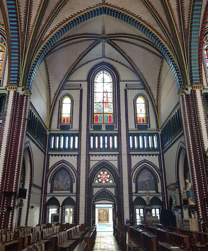 စိန့်မေရီကက်သလစ်ဘုရားရှိခိုးကျောင်းသည် ရန်ကုန်မြို့၊ ဗိုလ်တထောင်မြို့နယ်၊ ဗိုလ်ချုပ်အောင်ဆန်းလမ်းနှင့် ဗိုလ်အောင်ကျော်လမ်းထောင့်တွင် တည်ရှိသည်။ ယခင် ကျောင်းအဟောင်းမှာ ဘားလမ်းထဲတွင်ရှိခဲ့သည်ဟု သိရသည်။ လက်ရှိ စိန့်ဘုရားရှိခိုးကျောင်းကြီးကို ၁၈၉၅ ခုနှစ်တွင် ဟော်လန်နိုင်ငံသား ဒတ်ချ်လူမျိုး ဘုန်းတော်ကြီးဖာသာ ဟန်းဒရွတ်ဂျေဆန်မှ ဒတ်ချ်ဗိသုကာပညာရှင် Joseph Cuypers ၏ အကူအညီဖြင့် ရင်သပ်ရှုမောဖွယ်ဖြစ်အောင် တည်ဆောက်ခဲ့ပြီး ၁၈၉၉ ခုနှစ်တွင် တည်ဆောက်မှု ပြီးစီးခဲ့ကာ ယခုအခါတွင် ရန်ကုန်မြို့ရှေးဟောင်းအမွေအနှစ်စာရင်းဝင် အဆောက်အအုံတစ်ခုအဖြစ် ပါဝင်လျက်ရှိသည်။ မြန်မာနိုင်ငံတွင် အကြီးဆုံး ခရစ်ယာန်ဘုရားကျောင်းဖြစ်ပြီး အမှတ် (၆) အခြေခံပညာအထက်တန်းကျောင်း ဗိုလ်တထောင် (စိန့်ပေါ) နှင့် ကပ်လျက်တည်ရှိသည်။ ကျောင်းတော်ကြီးကို တည်ဆောက်ရာတွင် သံထည်အသုံးမပြုဘဲ အုတ်ချပ်များဖြင့်သာလျှင် ဘိုဇင်တိုင် (အရှေ့ရောမအင်ပါယာ) ပုံစံ တည်ဆောက်ခဲ့ပါသည်။ ဘိုဇင်တိုင် ပုံစံဗိသုကာဖြင့်တည်ဆောက်သော ဘုရားကျောင်းများမှာ အရှေ့တောင်အာရှတွင် ထိုစိန့်မေရီဘုရားရှိခိုးကျောင်း တစ်ကျောင်းသာလျှင် တည်ရှိပြီး အထူးသဖြင့် ဗိသုကာပညာရှင်များနှင့် နိုင်ငံခြားသားဧည့်သည်များ အများဆုံးလာရောက် လေ့လာလျက်ရှိသည်။ ဘုရားကျောင်းရှိ မှန်ပန်းချီကားလက်ရာများသည် ဒုတိယကမ္ဘာစစ်နှင့် သဘာဝဘေးအန္တရာယ်များကြောင့် ပျက်စီးခဲ့ရပြီး ၂၀၁၁ ခုနှစ်တွင် နိုင်ငံတကာပညာရှင်များနှင့် မူလလက်ရာအတိုင်း ပြန်လည်ပြုပြင်ခဲ့သည် ဟု သိရပါသည်။ ဘုရားကျောင်း၏ အတွင်းဘက်နံရံများပေါ်တွင် ရုပ်ကြွထုဆစ်ထားသော ဇာတ်တော်များကိုလည်း လေ့လာနိုင်ပါသည်။ ခမ်းနားလှပသော ဗိသုကာနှင့် စိန့်မေရီကက်သလစ်ဘုရားရှိခိုးကျောင်းသည် ရန်ကုန်မြို့ရှေးဟောင်းအမွေအနှစ် အဆောက်အအုံတစ်ခုဖြစ်ပြီး လူမျိုးဘာသာမရွေး ဝင်ရောက်လေ့လာ နိုင်သည်ဟု သိရပါသည်။