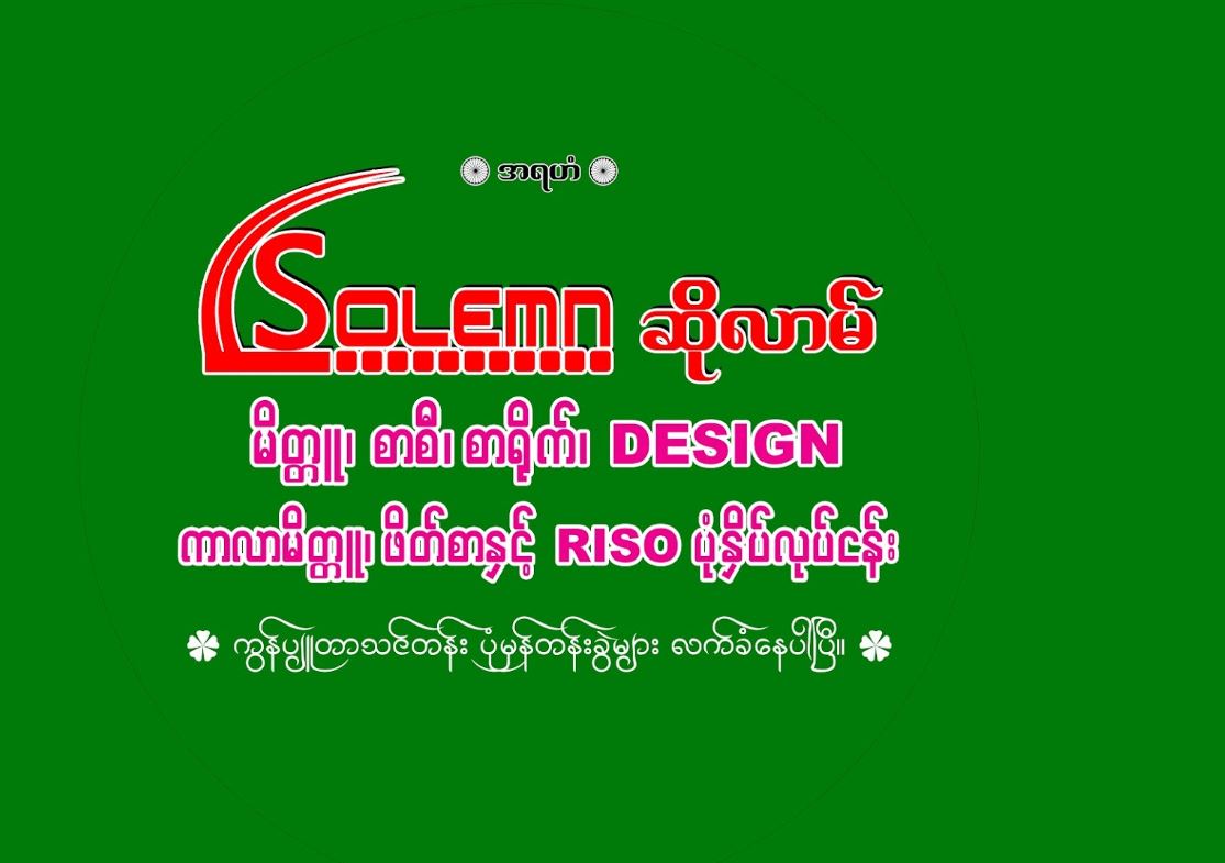 Solemn ဆိုလာမ် (မိတ္တူ၊ စာစီ၊ စာရိုက်၊ ဖိတ်စာနှင့် Riso ပုံနှိပ်လုပ်ငန်း)