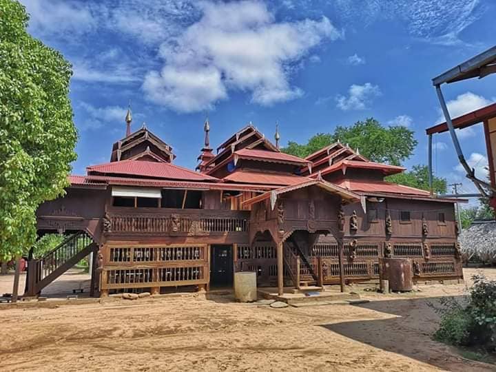 မန္တလေးတိုင်းဒေသကြီး ညောင်ဦးမြို့နယ် သဲပြင်တောရွာရှိ နှစ်ပေါင်း ၁၅၀ ခန့်သက်တမ်းရှိ ရှေးဟောင်းကျောင်းဆောင်ကြီးဖြစ်သည်။ ညောင်ဦးမြို့မှ ညောင်ဦး - ကျောက်ပန်းတောင်းလမ်း (ဗျတ္တပန်းဆက်လမ်း)အတိုင်း ၉ မိုင်ခွဲခန့်အကွာတွင် တည်ရှိသည်။ ရှေးယခင်က ကျောင်းကြီးစတည်ဆောက်စဉ် ဘုံပြဿာဒ် ၃ ဆောင်၊ တိုင်ပေါင်း ၈၁ တိုင်၊ အရုပ်ပေါင်း ၈၁ ရုပ်ရှိခဲ့သော်လည်း ယခုလက်ရှိတွင် တိုင်ပေါင်း ၅၆ တိုင်၊ အရုပ်ပေါင်း ၄၉ ရုပ်သာ ကျန်ရှိပါသည်။ ၁၃၃၅ ခုနှစ်တွင် လေကြမ်းတိုက်ခံရ၍ ကျောင်းကြီး၏ ပြဿာဒ်များ ပျက်စီးခဲ့သဖြင့် ရှေးမူမပျက် ပြန်လည်ပြင်ခဲ့ပြီး မူလကျောင်းဟောင်းကို အနည်းငယ်ချုံ့လိုက်ရာ အဆောင်တစ်ဆောင် လျော့သွားသော်လည်း ကျောင်းကြီးအပြင် နံရံများ၌ ချိတ်ဆွဲ တန်ဆာဆင်ထားသော မူလ သစ်သားပန်းပုရုပ်များကို ယခုတိုင်လေ့လာတွေ့မြင်နိုင်ပါသည်။ ကျောင်းကြီးတွင် ကျယ်ဝန်းသော ခန်းဖွဲ့များ၊ တန်ဖိုးမဖြတ်နိုင်သော ရှေးဟောင်းစာတိုက်များ၊ ဘီရိုများ၊ ယွန်းအုတ်များ၊ ကျောက်သပိတ်များ၊ ပေ ပုရပိုက်စာနှင့် ဇာတ်ကြီးဆယ်ဘွဲ့ရေးသားထားသောစာများ တွေ့နိုင်ပြီး အထူးခြားဆုံးမှာ အလွန်တွေ့ရခဲသော နွားလှည်းပေါ်တွင်တင်ပြီး အသုံးပြုသော ယခုခေတ်အခေါ် ကွန်တိန်နာဘောက်ကို နည်းစနစ်ကျကျ ဝါးနှင့် ပြုလုပ်ထားသည်ကို လေ့လာတွေ့မြင်နိုင်ပါသည်။