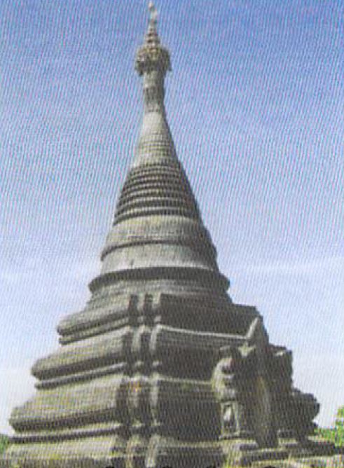 သက်တော်ရှည်စေတီသည် နန်းတော်ကုန်း၏အနောက်ဘက် တစ်မိုင်ခန့်အကွာ ပေ ၅၀ ခန့်မြင့်သော ရွက်ကားတောင်ကုန်းပေါ်တွင် တည်ရှိသည်။ ဘုရင်မင်းစောအိုသည် ကောဇာသက္ကရာဇ် ၈၇၇ ခုနှစ် (အေဒီ ၁၅၁၅)တွင် မင်္ဂလာအောင်မြေနင်း၍ မိမိနှင့် လူ၊ နတ်၊ ဗြဟ္မာသတ္တဝါအပေါင်း ကျန်းမာသက်ရှည်ကြစေရန် ဆုတောင်းလျက် ဤစေတီကို စတင်တည်ထားကိုးကွယ်ခဲ့သည်။ မင်းစောအိုသည် အသက်အရွယ်ကြီးရင့်ပြီးမှ ထီးနန်းစိုးစံခဲ့ရရာ ၆ လသာ ထီးနန်းစိုးစံခဲ့ရသဖြင့် စေတီတော်အား ပြီးမြောက်အောင်မြင်အောင် မတည်နိုင်ခဲ့ပေ။ ဘုရင် မင်းခေါင်ရာဇာသည် ကောဇာသက္ကရာဇ် ၈၈၇ ခုနှစ် (အေဒီ ၁၅၂၅)တွင် ဤသက်တော်ရှည်စေတီကို ပြီးစီးအောင်တည်ထားခဲ့သည်။ စေတီတော်မှာ ဂူပါသော ထုချွန်ပုံဖြစ်ပြီး စေတီတော်အနီးတွင် ကျောက်ဆင်းတုတော်ကြီး တစ်ဆူကို ဖူးမြော်နိုင်သည်။