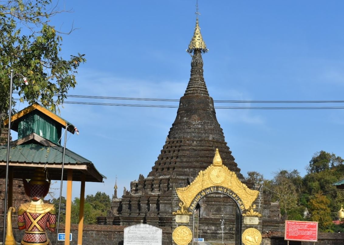 မြောက်ဦးမြို့ မာရ်ငါးပါးစေတီများအနက် အစောဆုံးတည်ထားခဲ့သော စေတီတစ်ဆူဖြစ်ပြီး နန်းတော်ကုန်းအရှေ့ဘက် မိုင်ဝက်ခန့်အကွာ မြေပြန့်တွင် တည်ရှိပါသည်။ သက္ကရာဇ် ၉၉၁ ခုနှစ် (ခရစ်နှစ် ၁၆၂၉)တွင် သီရိသုဓမ္မရာဇာမင်း တည်ထားခဲ့သည်။ မာန်အပေါင်းကို အောင်မြင်တော်မူသော သကျသာဂီဝင် မင်းမျိုးမှဆင်းသက်လာသည့် ဘုရားရှင်အား ရည်စူးပြီး တည်ထားတော်မူသော စေတီဖြစ်သဖြင့် သကျမာန်အောင်စေတီဟု ခေါ်တွင်ခဲ့သည်။ စေတီတော်ပတ်လည်အဝန်း ၂၄၀ ပေရှိပြီး ဉာဏ်တော်အမြင့် ၁၁၄ ပေရှိသည်။ ကျောက်တံတိုင်း နှစ်ထပ်ကာရံထားသည်။ စေတီတော်မှာ ကျောက်စေတီဖြစ်ပြီး ပွင့်အာနေသော ကြာပွင့်ပုံဖိနပ်တော် (ပစ္စယံ)ပေါ်၌ စေတီတော်ပေါက်ထားဟန် ဖြစ်ပါသည်။ အဓိပ္ပာယ်မှာ နွံတည်းဟူသော လောကီဘုံမှ ဗုဒ္ဓဟူသော ကြာပွင့် ပွန်းလန်းလာဟန် သရုပ်ဖော်ထားခြင်းဖြစ်ပါသည်။ ပစ္စယံအဆင့်ဆင့်တွင် ရာဇပလ္လင်တံကဲ ကျောက်ဆစ်လက်ရာများကို တွေ့နိုင်ပါသည်။ အရံစေတီ ၁၂ ဆူရှိပြီး ထောင့်လေးထောင့်တွင် မဟာသိမ်တော်ကြီးအဖြစ် ၆ ပေ ပတ်လည်ခန့်ရှိသော သမုတ်သိမ်တိုင်ကြီးများ စိုက်ထူထားရှိသည်။