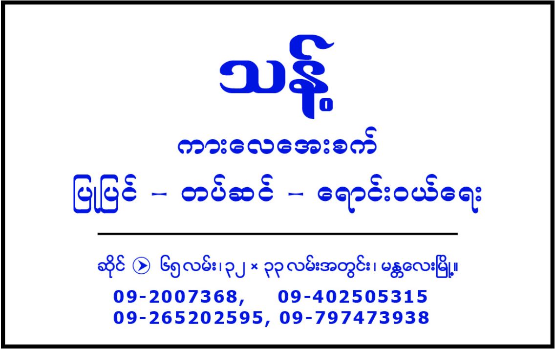 ဤ website ပါမှတ်တမ်းဓာတ်ပုံများသည် website စမ်းသပ်တင်ပြဆဲ ကာလဖြစ်သောကြောင့် အခြား internet website များမှ နမူနာအဖြစ် ကူးယူတင်ပြထားခြင်းသာဖြစ်ကြောင်း ရိုးသားစွာဝန်ခံပါသည်။ ယင်းအတွက် မူလပိုင်ရှင်က ခွင့်ပြုနားလည်ပေးပါရန် မေတ္တာရပ်ခံအပ်ပါသည်။