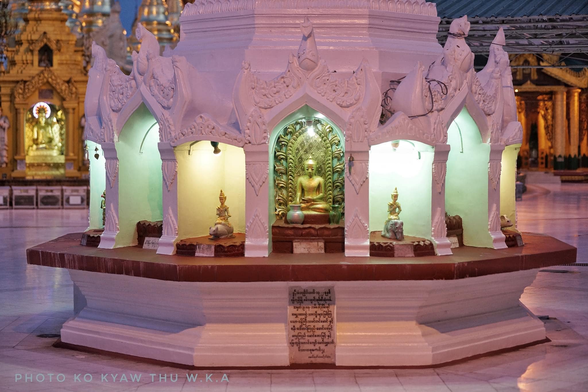 ရန်ကုန်မြို့ ရွှေတိဂုံစေတီတော် ရာဟုထောင့်အနီးတွင် တည်ရှိသည်။ အထွတ်၌ ရွှေချထားသော စေတီငယ်တစ်ဆူဖြစ်ပြီး စေတီတွင် နေ့ရှစ်နေ့၊ ဂြိုဟ် ရှစ်လုံးကို ပြသော မုခ်ပေါက်များ ရှိသည်။ နေ့ရှစ်နေ့၏ ဆိုင်ရာ ဂြိုဟ်ရုပ်များလည်း ပြုလုပ်ထား၏။ ရှစ်မျက်နှာစေတီဟု ခေါ်ကြသည်။