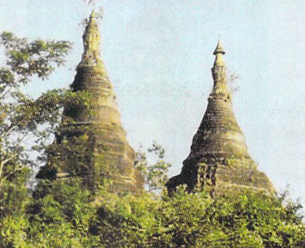 မြောက်ဦးမြို့ လက်ကွယ်တောင်စေတီ၏ မြောက်ဘက် မှောက်တော်တံခါးမအပေါ်တောင်တန်းထိပ် ရသေ့တောင် (ခေါ်) ဆုတော်ပန်တောင်ပေါ်၌ တည်ရှိသည်။ ကောဇာသက္ကရာဇ် ၈၇၇ ခုနှစ် (အေဒီ ၁၅၁၅)တွင် ဘုရင်မင်းစောအိုက ဤဆုတော်ပန်စေတီသုံးဆူကို တည်ထားကိုးကွယ်ခဲ့သည်။ ဗြိတိသျှခေတ်တွင် ရသေ့တစ်ပါး ဤတောင်တွင် သီတင်းသုံးနေထိုင်ခဲ့ရာမှ ရသေ့တောင်ဟု ခေါ်တွင်လာကြပြီး ဆုတော်ပန်စေတီကိုလည်း ရသေ့တောင်စေတီဟု ခေါ်တွင်လာကြသည်။