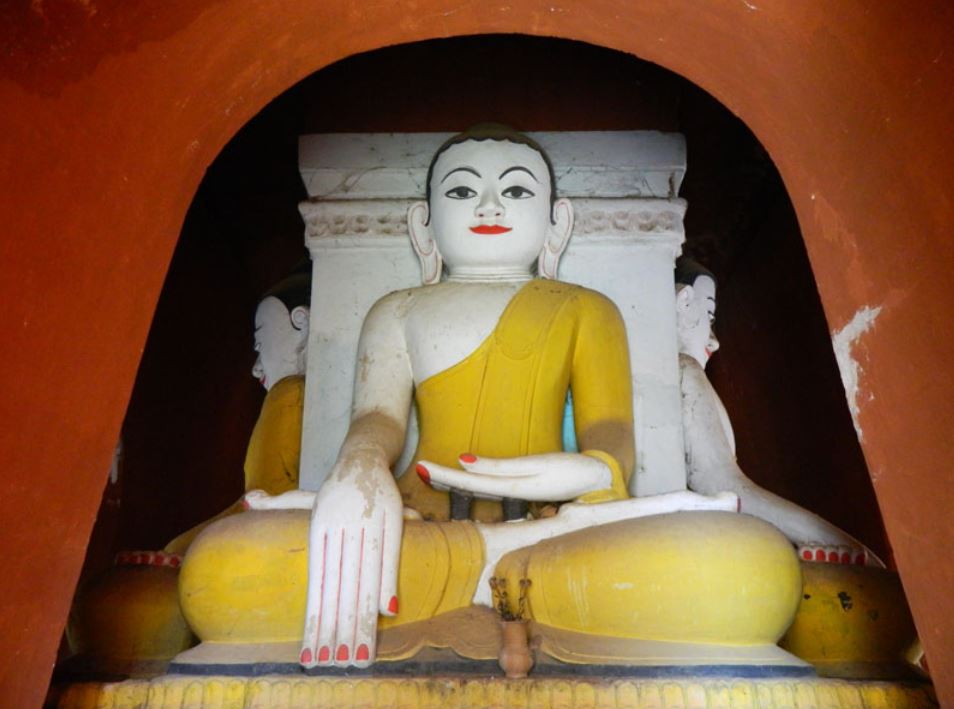 မန္တလေးတိုင်းဒေသကြီး၊ မိတ္တီလာမြို့မှ အနောက်အရပ် ၁၀ မိုင်အကွာ မိတ္တီလာ-ကျောက်ပန်းတောင်းကားလမ်းဘေး မုန်တိုင်ကျေးရွာတွင် တည်ရှိသော ထီလာပုဂံဟုတင်စားခေါ်ဝေါ်ကြသည့် ရှေးဟောင်းဘုရားစေတီများထဲတွင် ရွှေဘုံသာခေါ် ဇာတ်ဘုရား အမည်ရှိ စေတီတော်တစ်ဆူ တည်ရှိပါသည်။ စေတီတော်၏ လိုဏ်အလယ်တွင် ဗောဓိမဏ္ဍိုင်ရှိပြီး မဏ္ဍိုင်လေးဘက် ပတ်လည်တွင် မုခ်ပေါက်ဝများသို့ မျက်နှာမူထားသည့် ထိုင်တော်မူ ဗုဒ္ဓ ရုပ်ပွားတော် လေးဆူရှိပါသည်။ ရုပ်ပွားတော်များ၏ ကျောဘက် နံရံတွင် ကုန်းဘောင်ခေတ်လက်ရာ ဆင်စွယ်ဝန်းယှက်ထားသည့် ညောင်ရွက်ကနုတ်ပန်း ဆေးရေးပန်းချီများရှိပါသည်။ လိုဏ်ပတ်လည်တွင်လည်း ပန်းချီကွက်များရှိရာ အပေါ်ဆုံးတန်းတွင် နှစ်ကျိပ်ရှစ်ဆူဘုရားများကိုလည်းကောင်း၊ ယင်းအောက်တွင် ဗုဒ္ဓဝင်လာ ဇာတ်ကွက်များကိုလည်းကောင်း၊ ယင်းအောက်၌ ဇာတ်ကြီးဆယ်ဘွဲ့လာ ဇာတ်ကွက်များကို လည်းကောင်း ရေးဆွဲထားပါသည်။ ဗုဒ္ဓဝင်ဇာတ်ကွက်များ၏ အောက်နံရံပေါ်တွင် နေမိဇာတ် သရုပ်ဖော်ပုံများကို ရေးဆွဲထားကာ မင်စာများပါ ရေးသားထားကြောင်း မြင်တွေ့နိုင်ပါသည်။ စေတီတော်လိုဏ်အတွင်း မြောက်ဘက်မုခ်နံရံတွင် ဘုရားလောင်း နိမိတ်ကြီးလေးပါးမြင်ပုံ၊ တောမထွက်မီ ယသော်ဓရာ၏အခန်းသို့ ဝင်ကြည့်ပုံ၊ မဟာဇနက္ကမင်းသား သင်္ဘောပျက်ပုံများကိုရေးဆွဲထားပါသည်။ ယသော်ဓရာပုံတွင် အမျိုးသမီးလေးဦး တူရိယာများ တီးမှုတ်နေပုံကို မြင်တွေ့နိုင်ကြပါသည်။ တစ်ဦးက စောင်းကိုတီးခတ်၍ တစ်ဦးက ညှင်းကိုမှုတ် ကာ တစ်ဦးက စည်းလိုက်နေပုံကို ရှားပါးသောရုပ်ပုံများအဖြစ် တွေ့မြင်နိုင်ပါသည်။
