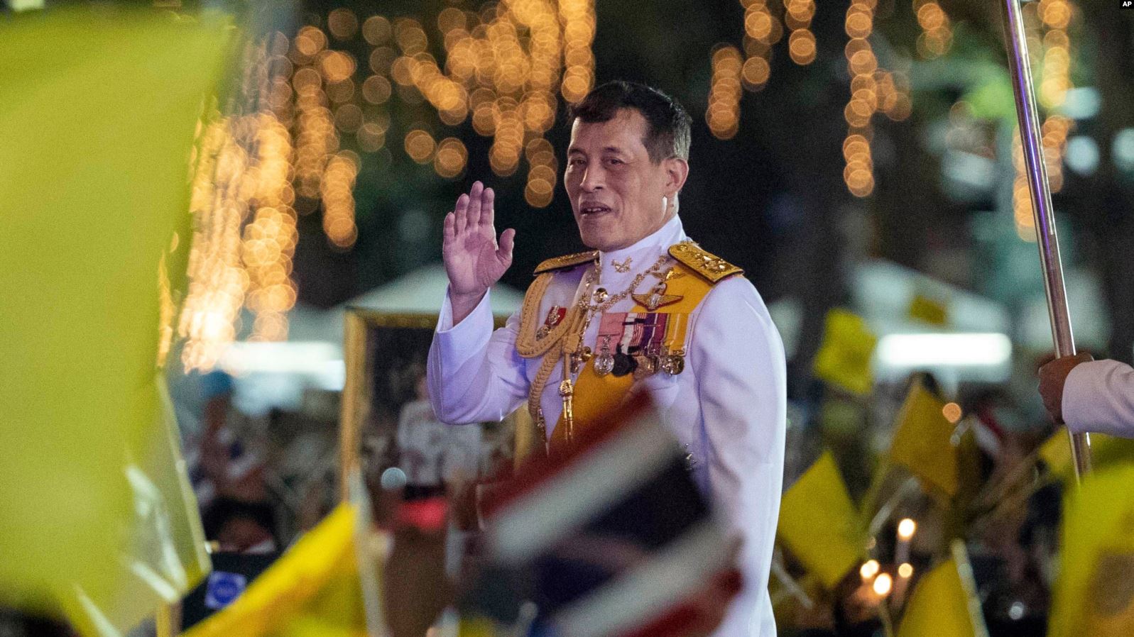 ဘုရင်မကြီး Suthida နဲ့အတူ ဘုရင် Vajirakongkorn ဟာ ဘုရင့်နန်းတော်အပြင်ဘက်မှာ ကြိုဆိုနှုတ်ခွန်းဆက်နေကြတဲ့ ဒီ ဘုရင်စနစ်ထောက်ခံသူ လူအုပ်ကြီးအကြား ဖြတ်လျှောက်ခဲ့ပြီး အားလုံးကို လက်ဝှေ့ယမ်း ပြန်နှုတ်ဆက်ခဲ့ပါတယ်။