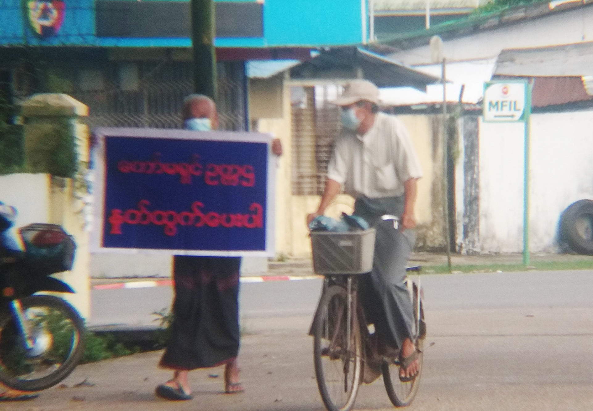 ပြည်ထောင်စု ရွေးကောက်ပွဲကော်မရှင် ဥက္ကဌ နှုတ်ထွက်ပေးဖို့ ဧရာဝတီတိုင်း၊ ပုသိမ်မြို့မှာ တကိုယ်တော်ဆန္ဒပြတောင်းဆိုခဲ့တဲ့ နိုင်ငံရေး တက်ကြွလှုပ်ရှားသူ ဦးအေးဝင်းကို ရဲတပ်ဖွဲ့က အမှုဖွင့်ထားပါတယ်။